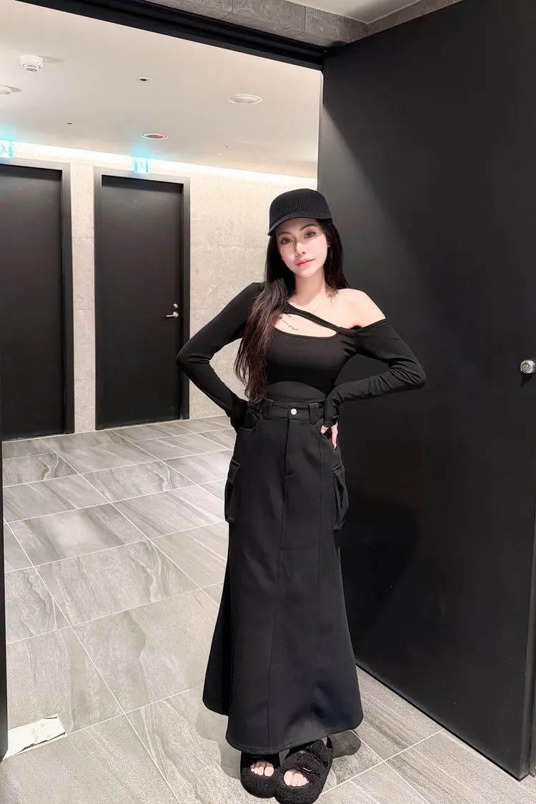 工裝棉質魚尾後開岔長裙