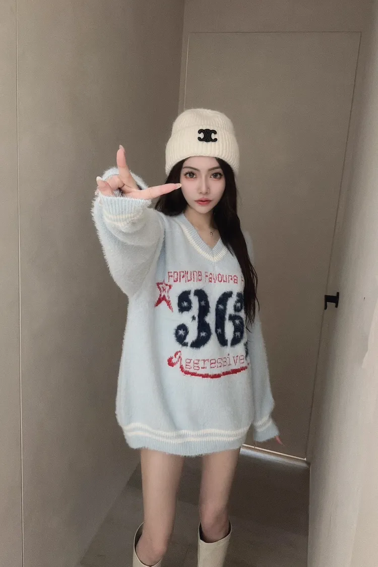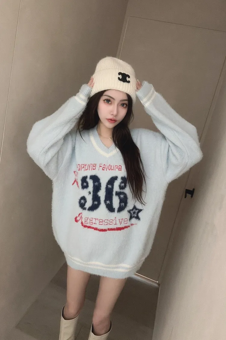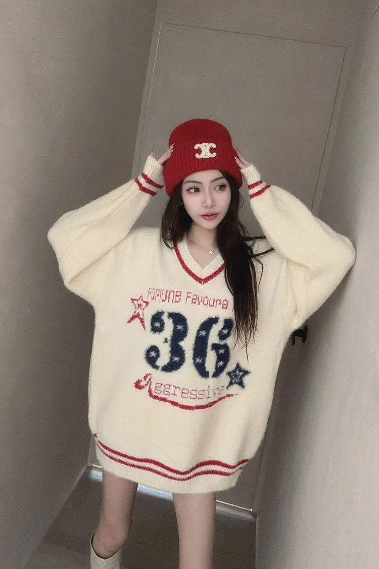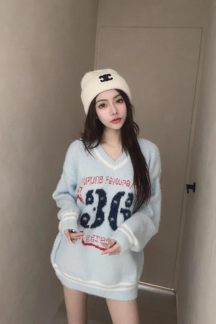 學院風數字毛衣