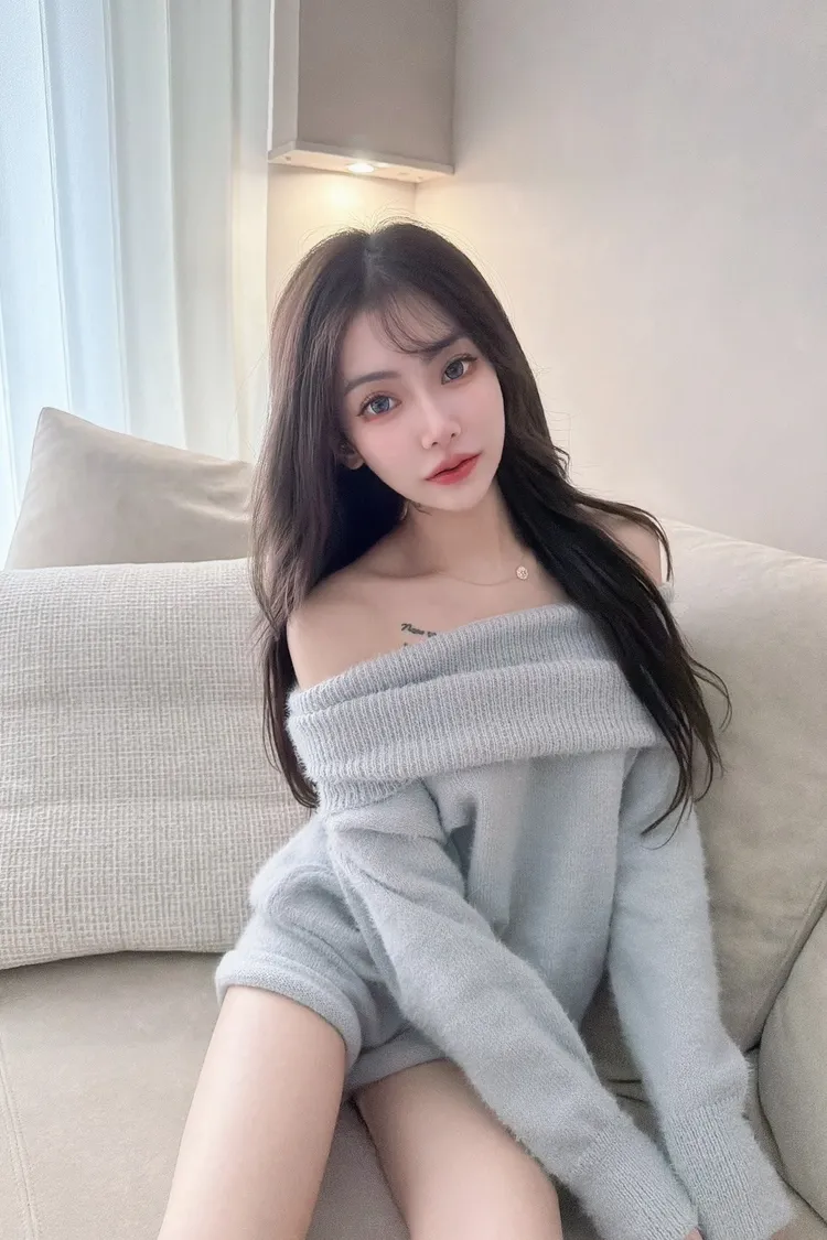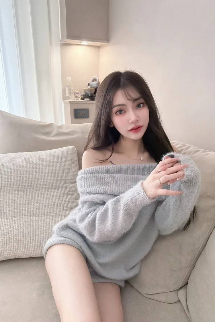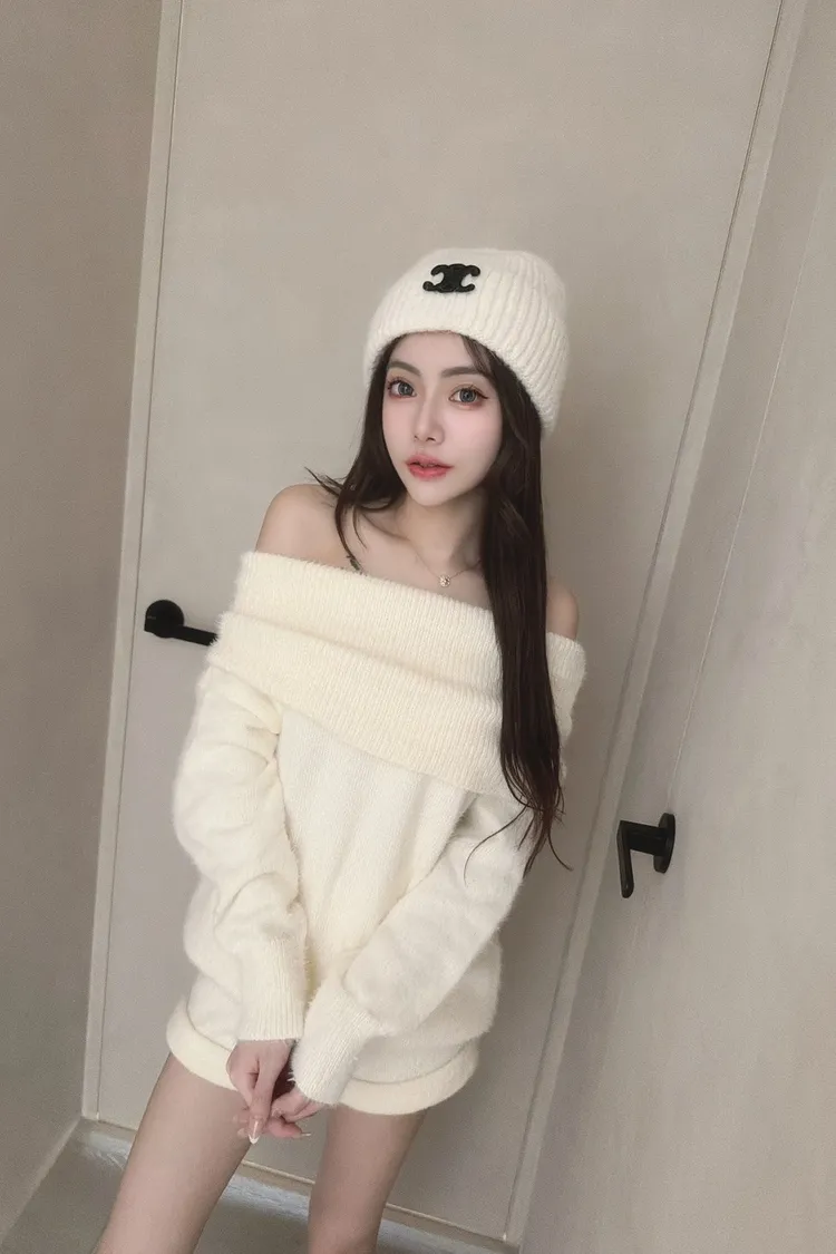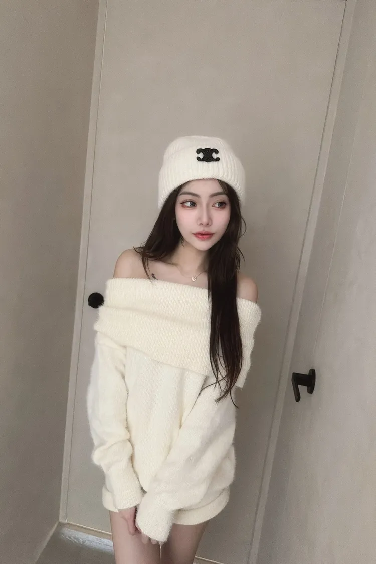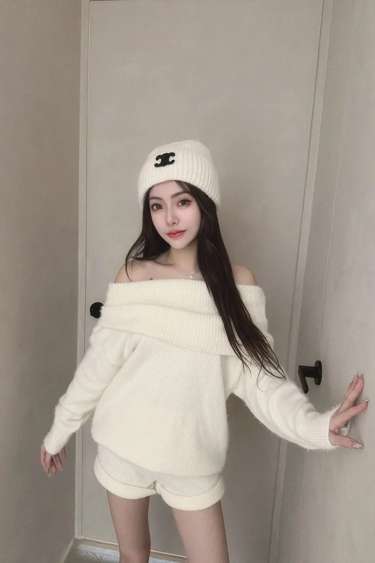 露肩翻領馬海毛套裝