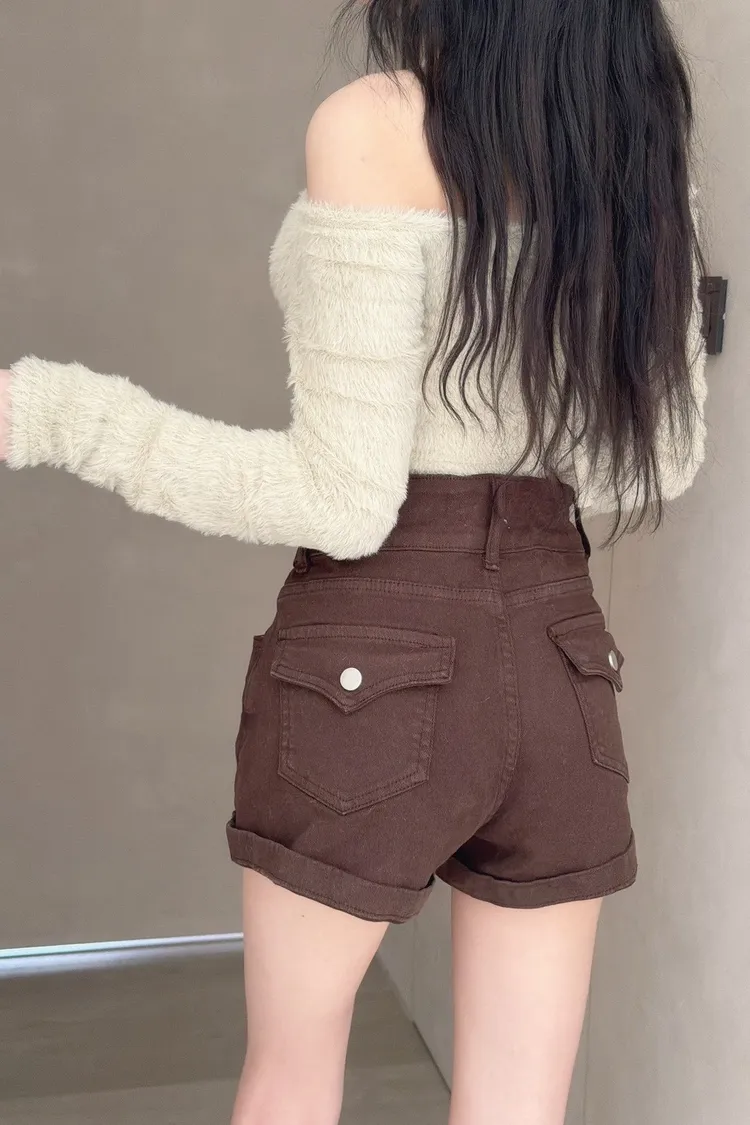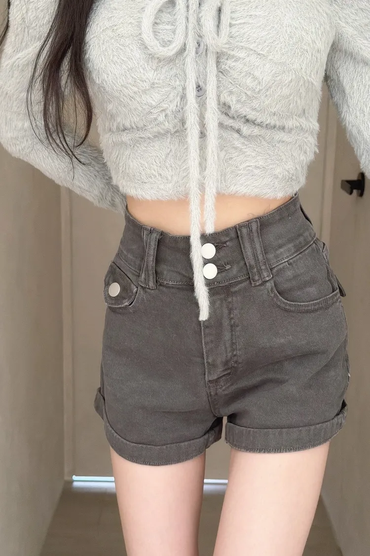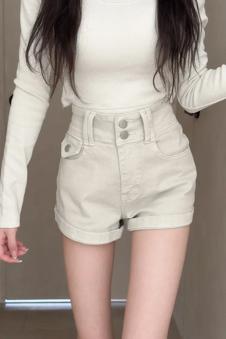 雙扣反摺牛仔短褲