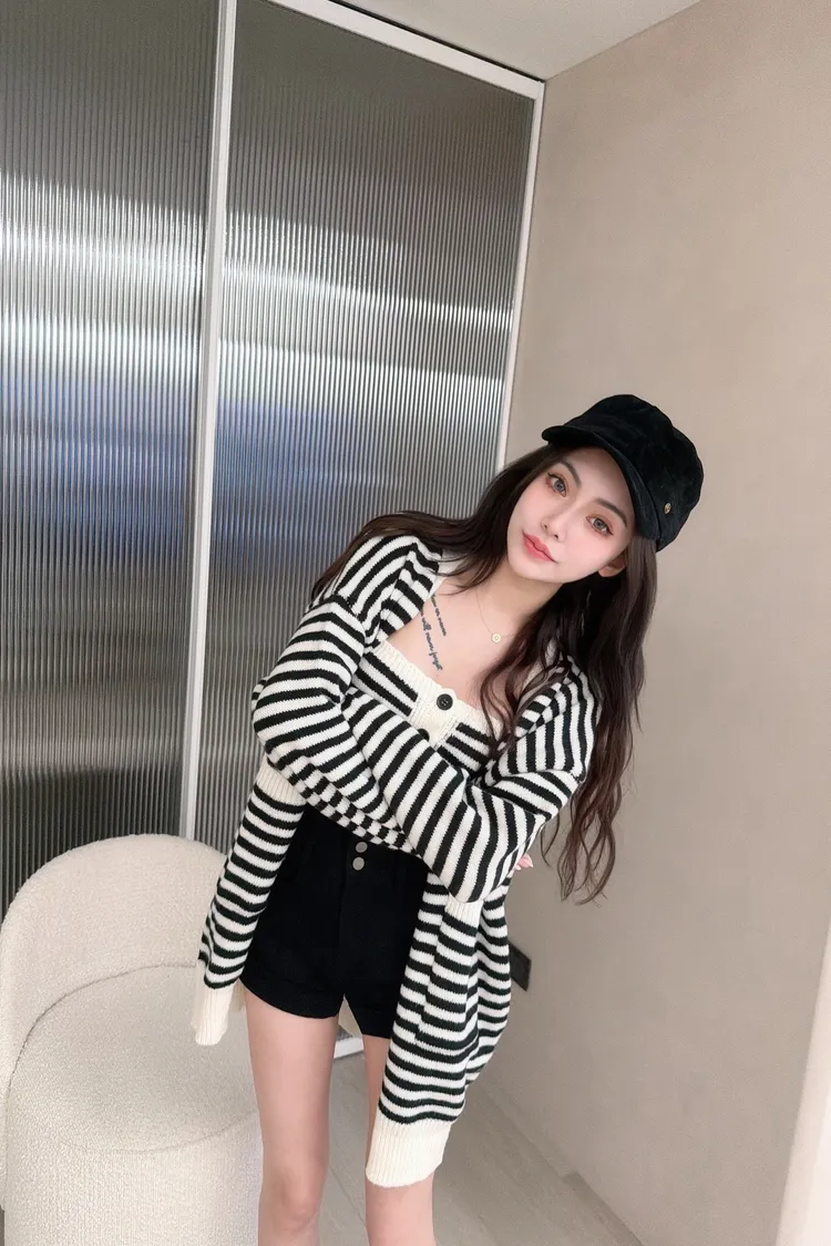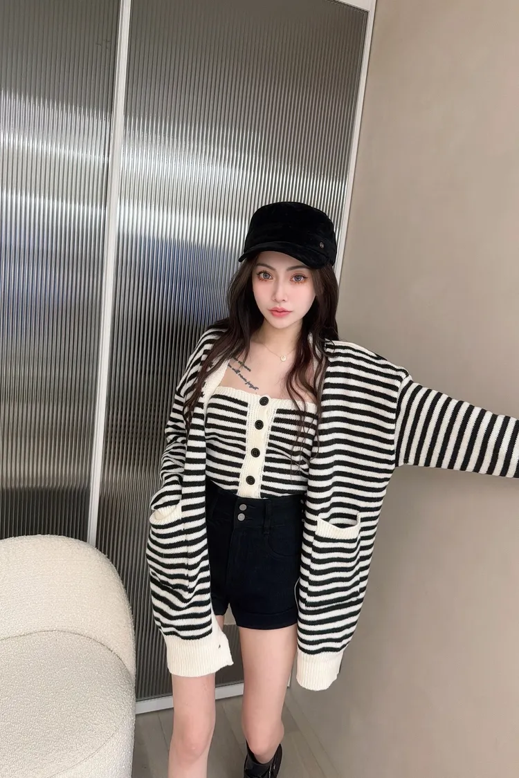 排扣針織平口➕條紋針外
