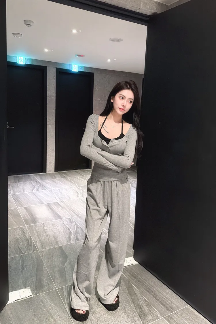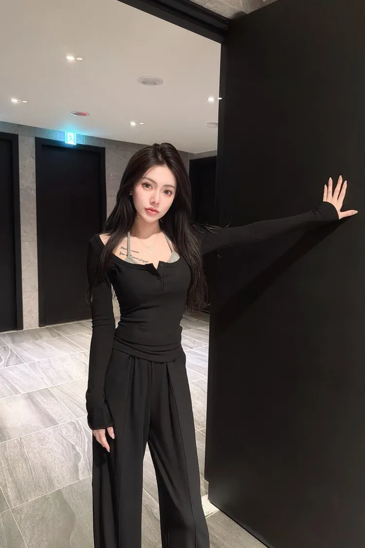 小性感假兩件+垂墜寬褲set