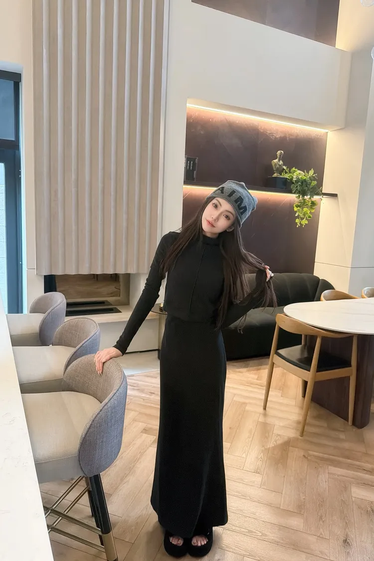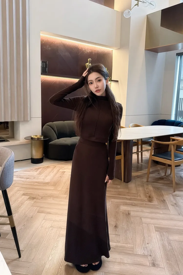 半領中線氣質兩件套