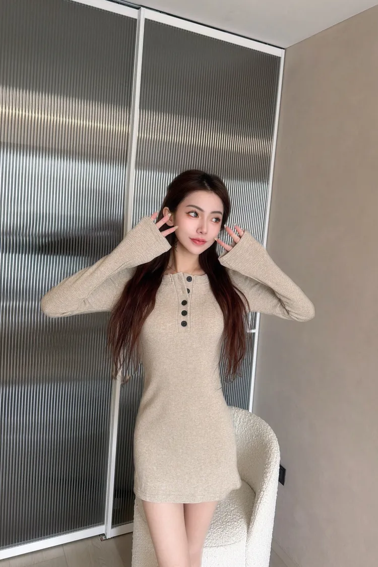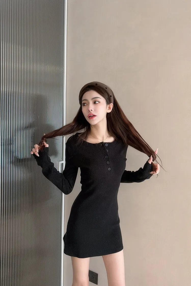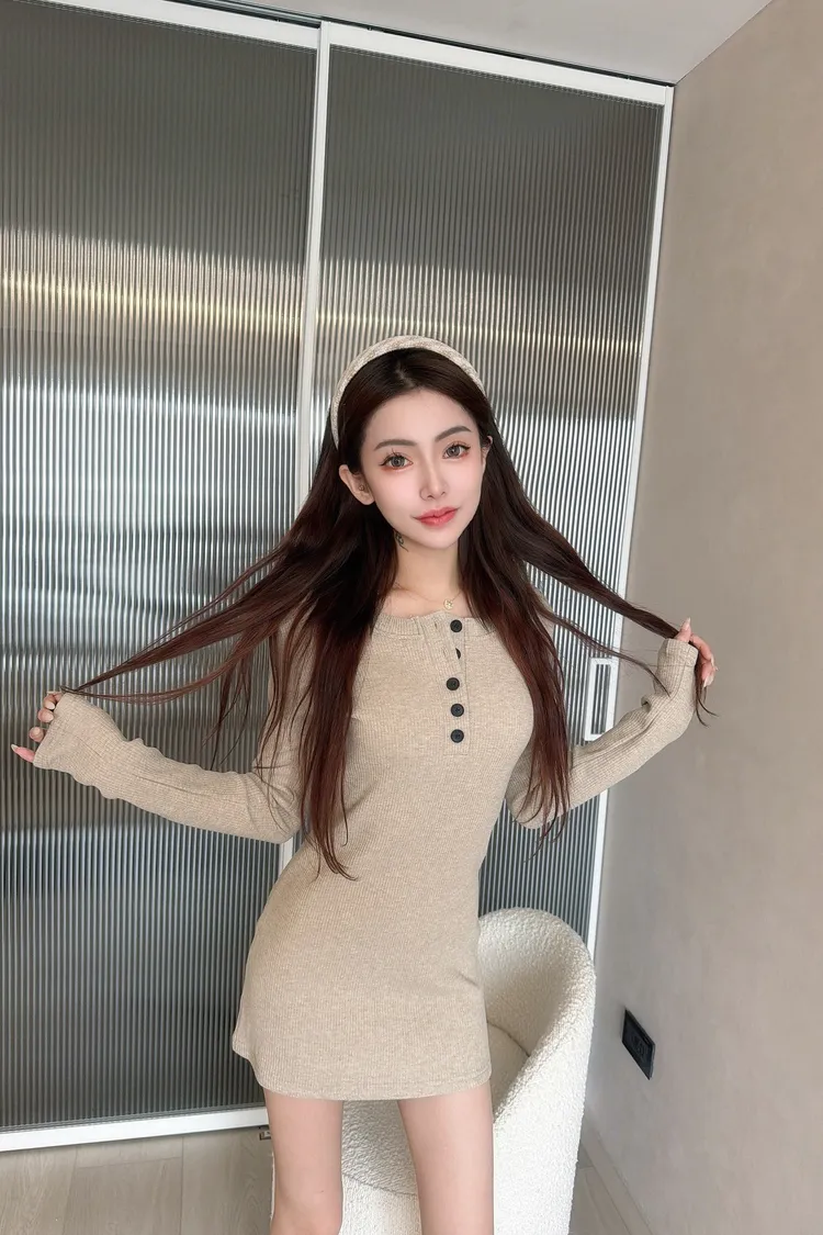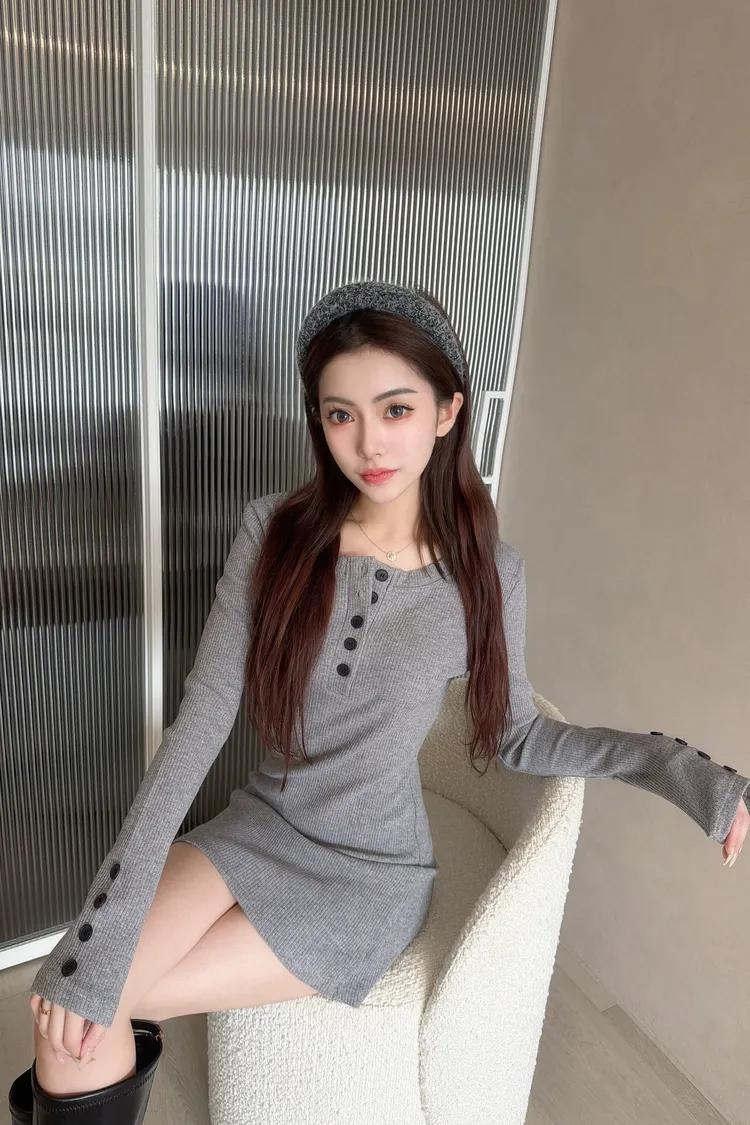 氣質排釦包臀裙